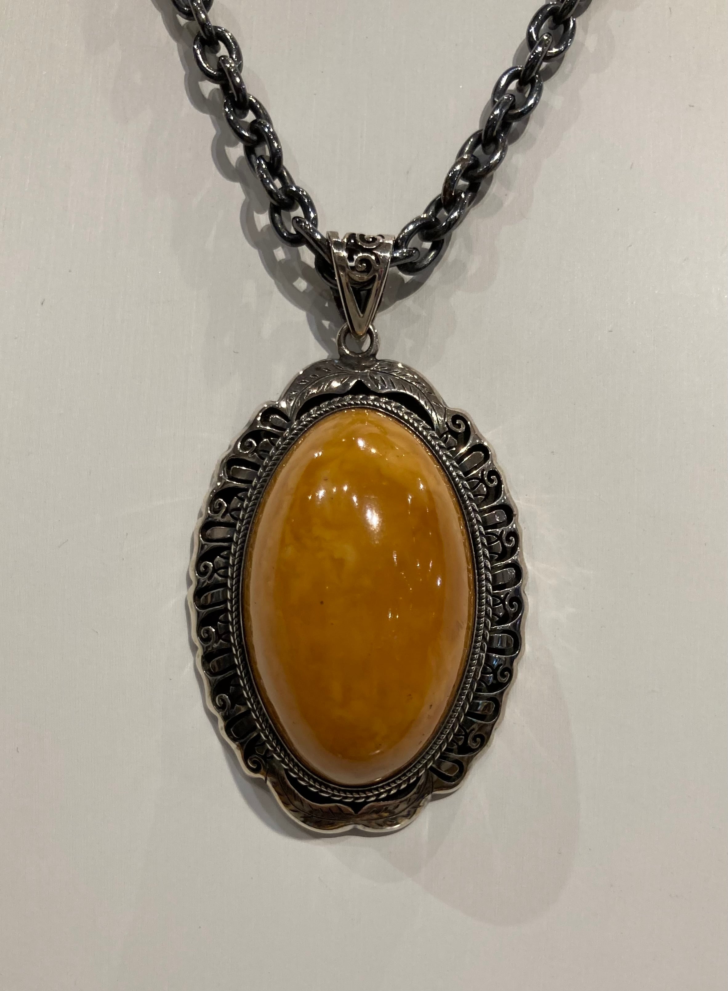 枠のシルバーは手作りで繊細な透かし彫りになっています