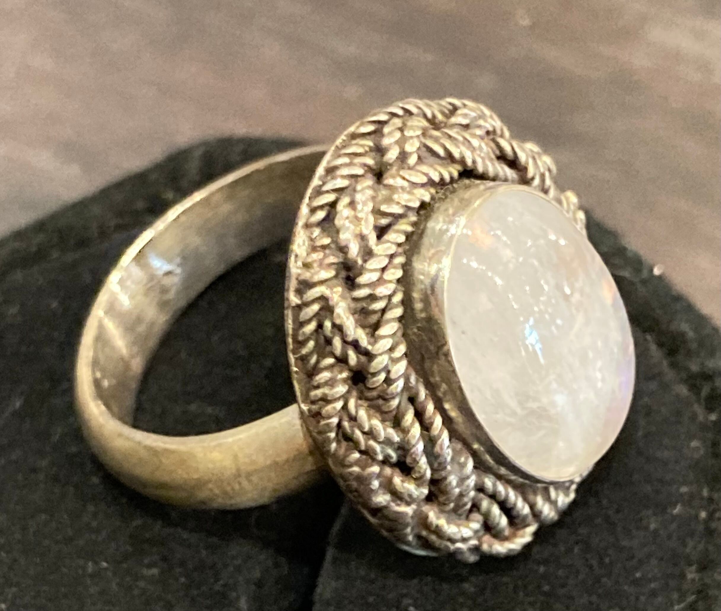 レインボームーンストーンシルバーリング